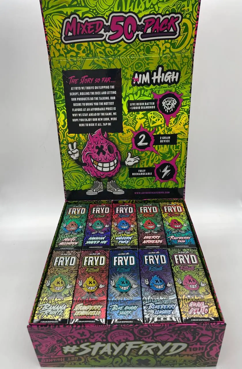 The Fryd 2g disposable is a prefilled, ready-to-use vape device containing 2 grams of premium extract. It requires no charging or refilling, making it ideal for users who value simplicity and portability.